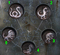 The object is to place the appropriate item of that step or path in the mouth of the gargoyle and draw the correct symbol on the panel.