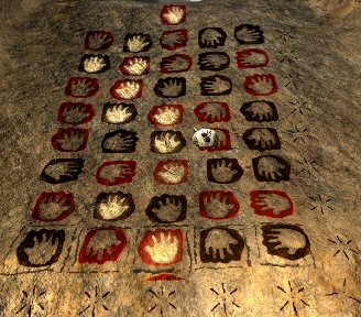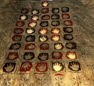 At the end of the maze, is a cavern with a handprints wall at far wall.
