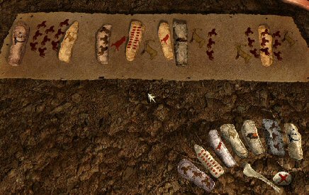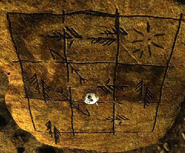 Spirit music puzzle - The spirit engraved musical stones are placed on a skin on the ground. The object of the puzzle is to play the music of the spirit to awaken them.