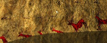 Use the brush dipped in black pigment or the black chalk given by Lahrik to outline the bottom right stag. Click on the legs and antler.