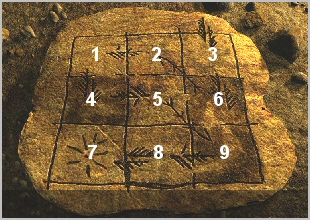 | The symbols drawn on the large flat rock in the cave illustrate how to navigate through the labyrinth. | ||||||||||||||||||||||||||||||||||||||