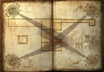 Adjust the degrees of the 3 celestial bodies in the Cloux manor map. The x marks the chapel.