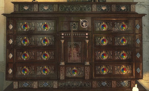 Altar - Insert Francois I's signet ring in the hole of the tabernacle. Take the sceptre from the altar and use it on the signet ring in the hole.