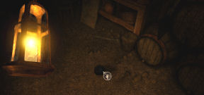 Dovecote guard - Throw a pebble on the left by the small bridge. Enter the dovecote.
