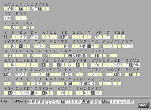 (2) Now look at the fifth word along the same line. It consists of two letters only of which the first is “I”. The second letter can only be “F”, “N”, “S” or “T”. Try whichever you prefer.