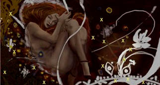 Gus gets a psychic vision. Go forward, turn left and look close at fireplace. Take the ring of Fay. Go to bottom of bed and take slivers of glass with purple powder. Look close at drawer by the bed and take the key to strongbox. Go to the bathroom and see black dye on sink. (Isn't her hair red?)
