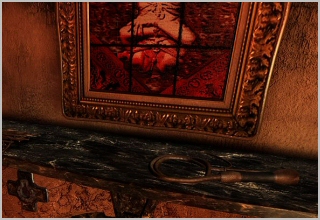 | The painting recedes into the wall, revealing a key handle. Take the handle and then combine it with the key tip in your inventory. The completed key fits the keyhole in the fireplace in the other room. | |||||||||