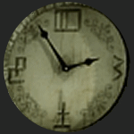 | Examine the clock in the bookcase. The four symbols correspond to the numbers 3, 6, 9 and 12. The symbols for 3 and 6 are identical to two of the symbols on the wooden blocks. Although 9 and 12 are not needed for the combination, studying all four symbols will help in working out the association between numbers and symbols. | ||||||||||||||||