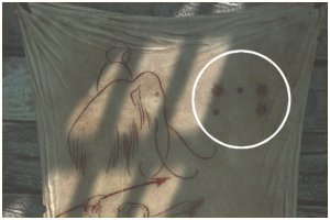 | Move the barrel that was blocking the door to the hold. Climb the ladder in the centre of the hold to get the ivory hook in the anchor room. Return to the mast room, but before hoisting the sail take a close look at the canvas drawings pinned to the wall. Next to each drawing is a sequence of 'dots'. Make a note of the sequence of dots next to the mammoth drawing on the right hand canvas. |