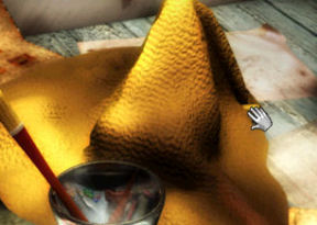 Rubik's cube: Look close at the one sided Rubik's cube at side table. Solve the puzzle by making all the squares yellow similar to the center one.