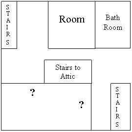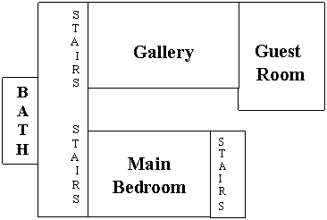 Step out of the close up, exit the bathroom and take two steps down the lower hallway. As you thus reach right between the doors to