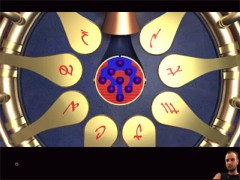 Zoom out and go all the way back to the big wheel shape device. Zoom in on the device and push the signs on the device in the same order as the five compasses have been pointing to. When you've done well, the blue bulb opens and reveals 9 blue balls. Take them! After that also make a note of each word that you'll hear in the foreign language by pushing each and very sign on the wheel. I think these are the correct words: