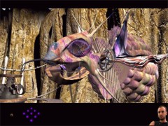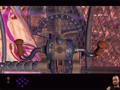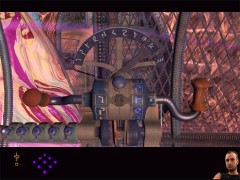 Zoom out and head back all the way to the gondola you just have seen. This time enter it. Pull the lever. When the gondola stops, exit. Turn around and walk towards the tunnel. Enter the tunnel and walk until you are standing on a crossing. Look around and you'll see a wheel shape device at your left and the same one at your right. Walk towards the gas collector at the right side. You'll have another close encounter with Dr. Bremmer.