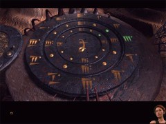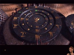 Hannah is still standing near the big wheels. By pushing the right signs, she'll travel by the floating island to Matia Island.