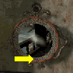 From the book on the table inside THE HOUSE UNDER THE STAIRS you learn that "the ‘hanging stones’ contain a great and secret force called four and forty…". The pages in the book contain certain ‘numbers’ – the only combination of which that add up to 44 are (4 + 8 + 32). Note the shape of the frames around these ‘numbers’. The "hanging stones" are on the walls outside the rear of THE HOUSE UNDER THE STAIRS. Only 3 have the same shaped frames as those around the 'numbers' 4, 8 and 32 in the book.