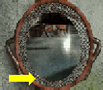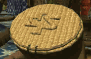 The large metal scoop above the well is attached to a 'balance' – on the other side of which is a straw basket. The strange symbol on the straw basket is a mirror image of the number '22'.