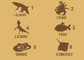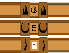 Slide the top beam until the symbol in the "combination slot" corresponds to the one on the "Rhino" sundial. Similarly slide the middle beam until the symbol in the "combination slot" corresponds to the one on the "Buffalo" sundial. The correct symbol for the bottom beam is found by "trial and error".