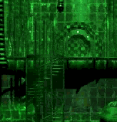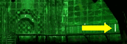 A stairwell (to the left of the middle door) is also visible through the night vision devices.
