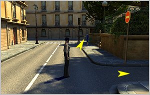 When Nico finds the guy with the skateboard (in the streets outside Vernon's apartment), try to give him the lipstick. You don't get any reaction, but this triggers two exits to the sights of Paris. You get there by either going right at the road before the traffic warden or by crossing the road just beyond her.
