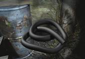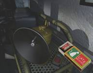 Step out of the close up, turn left twice now, and close up on the gas cylinder. Click on the piece of rubber hose in your inventory, to see it attach itself to the top hole in the cylinder. Click on the blow torch now, to see it attach itself to the far end of the rubber hose, leaning over the padlock on the door. Turn on the gas now, by clicking on the cylinder's valve in the center (just above the spot where the first end of the rubber hose had attached). You will hear the sound of gas coming out. Click on the box of matches, to bring it out. Click on a match stick, and then on the side of the matchbox, to light up the match. Click on the far end of the blow torch now (the one right above the padlock). Wait for the cut scene, as the padlock is thus heated and falls off.