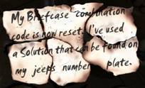 Note: Don't waste your time trying to fit the pieces exactly, because they will fit just enough to relay the message. As we had already noted, the jeep's number plate was 4X 68578. Thus, according to this note, the combination should be 4 times 68578 = 274312.