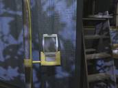 You will not be able to do anything until he finishes (you can't even skip the dialogue, I am afraid). After the man is done, step out of the close up, turn around and enter the Café. You will have to click on the right door to get in, because the one on the left is blocked by a serving cart. As you enter, take a step forward, turn around and enter the serving area on the right side of the wall in front of you. Turn right and enter the Kitchen. There are no lights but look to your right and find a yellow-colored lantern sitting there. Click at the base of this lantern and a black funnel will be "presented" to you. Click on the yellow lever just above the funnel to turn it. If you have done it correctly, you will then be able to click on the box of matches in your inventory, to bring it out and see it opened for you. Click inside the open box to bring out a single match stick. Click on the side of the box to light up the match, and then click on the black funnel of the lantern to light it up as well. Now click on the lantern, which will then be deposited in your inventory.