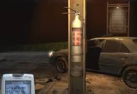 Go back into the Lobby now, and step outside the service station. Click on the GPS unit, in the top right portion of the screen, to bring it out in view. Click on the "Activate" button on it, to see it settle in the lower left portion of your view. Take one step forward then, turn left, and close up on the Fire Extinguisher on the pillar. [Note: the GPS delivers a clear reading, and this is the only place where it does so, according to Conrad as well.] Click on the Fire Extinguisher now, to see it raised high enough to reveal a metal piece (the second piece of the Artifact) below. Click on the Artifact piece, to deposit it in your inventory.