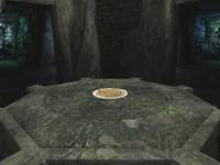 Step out of the close up. Take two steps forward, and then turn right. Take eight steps forward, going down in some kind of a hollow. Note the two large stones on either side of you in your front, and the Altar Stone immediately to your left. Close up on the Altar Stone, to find a piece of paper to its left on the ground. Pick up the paper, read it, and then put it away. Step out of the close up.