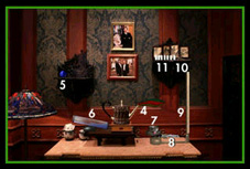 Now go to the crystal ball in the middle of the Great Hall and click on it. Watch the movie clip of a wall panel sliding away. Go to the fireplace and click on the circle in the middle. It slides away and you can get the key. Click again on the key and Mei appears. Listen to her story and follow her through the door. Keep walking till you hear somebody scream. A woman (her name's Susanna) leaves a room with a red door; the Capricorn Room. Enter and the Tour is over.
