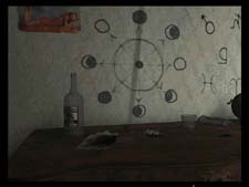 At the loft, click forward once, you hear a board squeak. Turn 180 degrees around and tilt your view down and click on the area of the floor near the cord of the broken lamp. Jim will remove the floorboard, click on the item inside and take it to your inventory. Then turn to your left and click on the area near the potbellied stove. Then click on the broom brush, this will trigger a Video Sequence, Jim will make a note of the Rune symbols on the floor which you can examine in your Notebook. Access your World Map and go to the Hotel Cleveland.