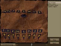 If you haven't done it already go towards the door and turn on the light switch by clicking on it. Then turn and face the desk from that position at the doorway, and tilt your view up to look at the light fixture. You notice some shadows in the fixture -- click on them. You now have some parchment papers and a bag of Runes in your inventory. You can look at them but DO NOT attempt to put the shapes together--this will be done much later in the game. ( If you attempt this now, there is a known bug here, when played on some systems-you could possibly get those symbols stuck on the stone shape and not be able to use them when you need to) Now access your World Map and go to Detective Merylo's Office.