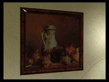 make note of the numbers 19, 6, 33. Make your way over to the painting on the wall with the fruits, and pitcher on it.