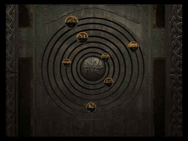 At the party, talk to Winslow, Then talk to the man standing guard at the door. Then turn left and tilt your view down and click on the upside down plate on the table, from here go forward behind the blue screens and you will see a table. Turn right and notice the tray of glasses. In your inventory use the plate on the black table, then click on the tray of glasses. This will create a diversion so Jim can slip into the back room. After another video sequence, you can explore the room with your flash light. Note the astrology painting on the right side of the fireplace and the Rune symbol chart on the left side. (Esp-what each Rune stands for) Turn left until you are facing a big round table and then tilt your view up and see that there is a cord for the light switch, click on it and turn the lights on. You will notice the panel directly in front of you on the table cannot be opened, but you can go around and open all the others. Read the inscriptions underneath these panels. Then referring to your inventory and Helen's notes,, and the parchment papers --All this information put together gives you the order in which the panels are to be opened. Start with all the panels closed. And assign numbers to them starting with the locked one in front of you as number 1 and continue in a clockwise manner and open in this order---- 6---8---11---12---9---4---5---7---2---3---& 10, the bottom one opens to reveal a Book and triggers another video sequence.