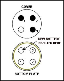 The plates can be rotated so that the battery in a plate starts in a different position. For example, in the diagram above, if the battery starts in positions 1, 2 or 3 it will be correctly aligned after the plate turns once, twice or three times respectively. Unfortunately, the bottom plates always turn a different number of times whenever you pull the handle.