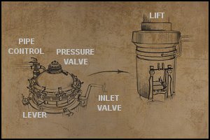 The large boiler and the green structure to its left are drawn in your Journal.  You'll need to experiment with the various controls to figure out how the boiler works.