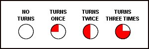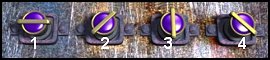 The points where the outer cogs join the middle one are indicated by the numbers 1 - 4 in the graphic. To reset the cogs to their original positions, exit from the mechanism and then re-enter.