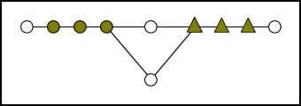12) Move the top two triangles to the sixth and seventh holes 13) Move the last (left) round knob to the centre hole 14) Move the bottom triangle to the left (second hole) 15) Move the top left triangle to the third hole (via the bottom) 16) Move the top right triangle to the fourth hole (via the bottom) 17) Move the round knobs into their correct positions | | |