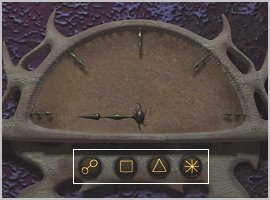 | Place the Grail on the deity's outstretched hands and then click the pool of water. Images of all the mood figures appear in the water in a specific sequence. Make a note of the sequence, then try work out where it can be replicated. |