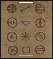 | If you clicked the scroll on the bookcase shelf in the Astrologist's laboratory, then a new diagram would have been entered in your Journal. Note that the symbols on the lift control buttons are identical to those in the centre of the diagram in your Journal. |
