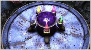 | Now press the corresponding buttons on the four sides of the gigantic crystal. When a button is pressed it will have a small indentation on it. If you accidentally press an incorrect button, press it a second time to reset it. The gigantic crystal transforms into the Symbol Of The Magical World. |