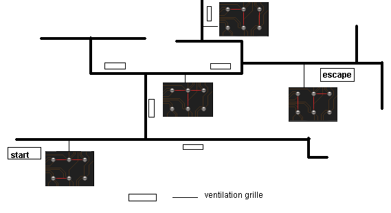 Miranda has to make it to the opening labelled "escape". Every grille has an