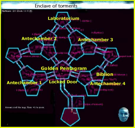A: Go to the four antechambers and use Gate spell to travel to their inner chambers called Narthex. Push the switch on the stone pedestals. After you push the fourth switches, the locked door at the Golden Pentagram room will be opened. Use the Gate spell to travel back to the antechambers. Go to the unlocked door at the Golden Pentagram room. Prepare yourself to blast several more spirits.