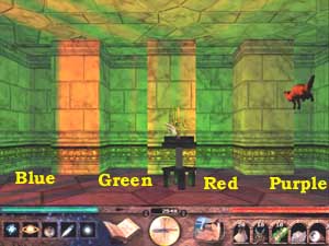 blue, green, red, and purple. Turn around and you'll see the stair. You'll