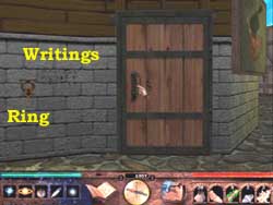 Secret 10: On the southwest part of the city (near Barneby Arsenal), you'll see a big building with picture of the cooked chicken and cleaver. To the left of it, you'll see a ring with rope and some strange writing on the side of it. You'll see another door with that kind of writing on the left of it at the right wall of the same building (on the other side of the right corner). The trick works like this, when you pull the ring it will unlock that door for temporary. So pull the ring and run quickly to your right side and open the door. Inside you'll find a chest with healing scroll, dagger, and small pot.