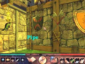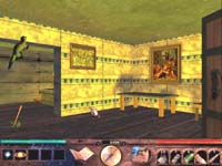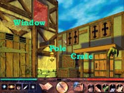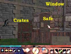 | Secret 3: The same area but this time enter the left building. There's a hidden safe behind the picture on the corner. You'll find Flintskin inside. Outside the building, to the left, you'll see a pile of crates. Climb them and jump to the roof. Enter the open window. Inside you'll find platemail breastplate, manastone, and Quick Silver. | ![]() |